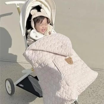 Cozy Fleece Winter Stroller Blanket for Babies – Cartoon Print, Windproof Swaddle Wrap